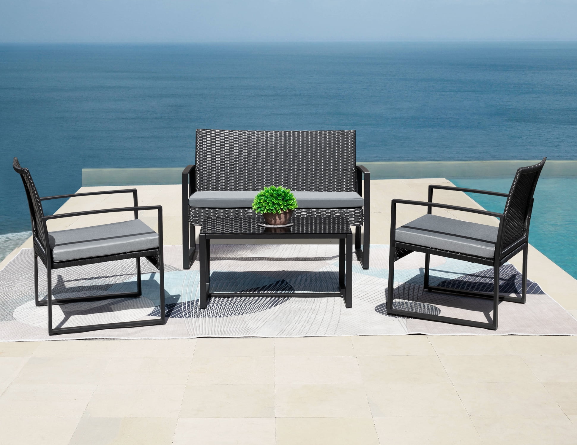 clearance patio sets walmart bistro dining rattan piece wicker coffee sectional sofa cushioned backyard poolside